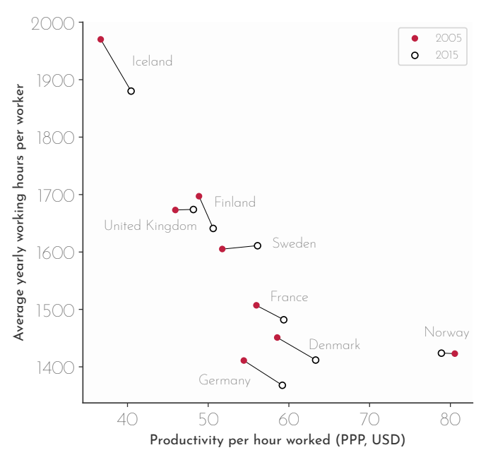 Similar improvements in productivity have been found in other countries working fewer hours per week, including France, Denmark and Germany.
